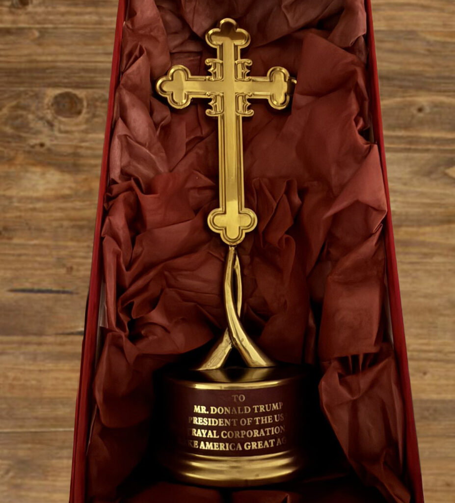 Kao simbol poštovanja i duhovnih vrednosti, Miloš Nenezić je, pred početak zajedničke molitve, predsedniku SAD Donaldu Trampu uputio pravoslavni krst sa posvetom, izrađen u klasičnoj formi i namenjen kao znak dobre volje i međusobnog uvažavanja.